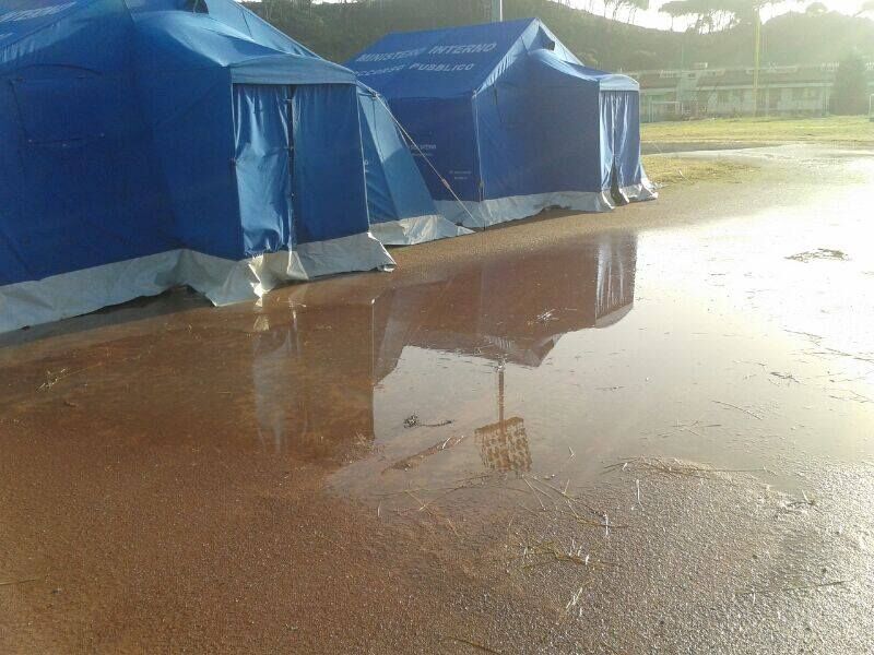 Messina, a city of 250.000 inhabitants located in the northeastern littoral of Sicily, has become one of the most discussed cities by the national media in the last days. A huge landslip has destroyed the water pipeline which supplies the city while continuing rainfall floods the region. Inadequate emergency policies make local people suffer and exacerbate the living conditions of hundreds of refugees and asylum seekers that are forced to live in camps. Portrayed in this picture is the camp of Pala Nebiolo, one of the three camps put in place by the Ministry of Interior in Messina. A university baseball camp, was fasts transformed into ‘a reception centre’ for migrants when the first group of asylum seekers arrived in the October 2013. The Pala Nebiolo is supposed to be a temporary structure put in place to meet the demands of the “migrant emergency”. The camp hosts 30 tents that provide shelter to at least 250 persons. There are six bathrooms overall and a big refectory positioned among the tents. The space is at the mercy of weather conditions, both in the summer and in the winter time. The high temperatures of the summer make the tents suffocating, while in the winter the rain floods the tents making the cold unbearable. The health conditions produced by the exposure of asylum seekers to the elements of nature has become one of the most urgent issue raised by the migrants themselves, as well by the local associations and by activists who advocate the rights of migrants. Two long years have passed from when this camp came to exist, several protests and legal denounces have taken place, but the camp continues to be there, ready to ‘host’ more asylum seekers and migrants/refugees who arrive daily. .